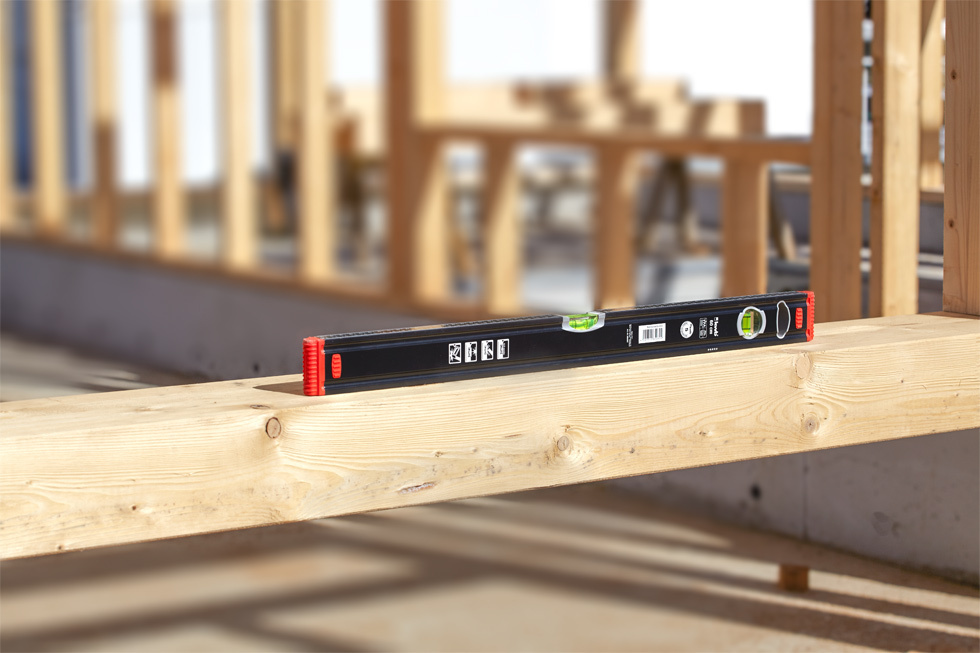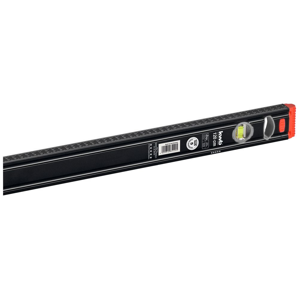 Aluminium waterpas, VPA-gekeurd, met verticale en horizontale libel, precisielibellen, nauwkeurigheid 0,5 mm/m, uv-bestendig, breek- en slagvaste libellen, precisiegeslepen steunvlak, opdruk met centimeterschaal, met schokdempende eindkappen