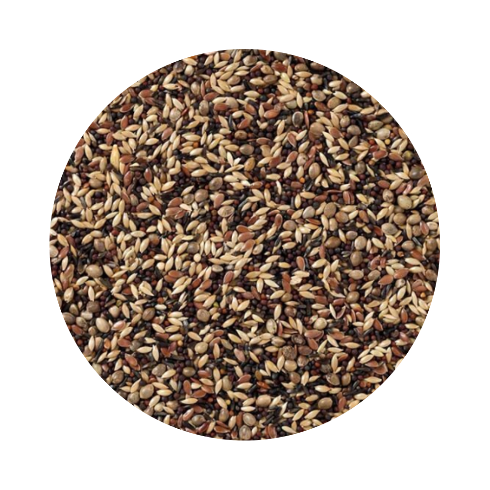 Een mengeling met een hoog aandeel aan zwarte zaden, zoals: negerzaad en raapzaad.