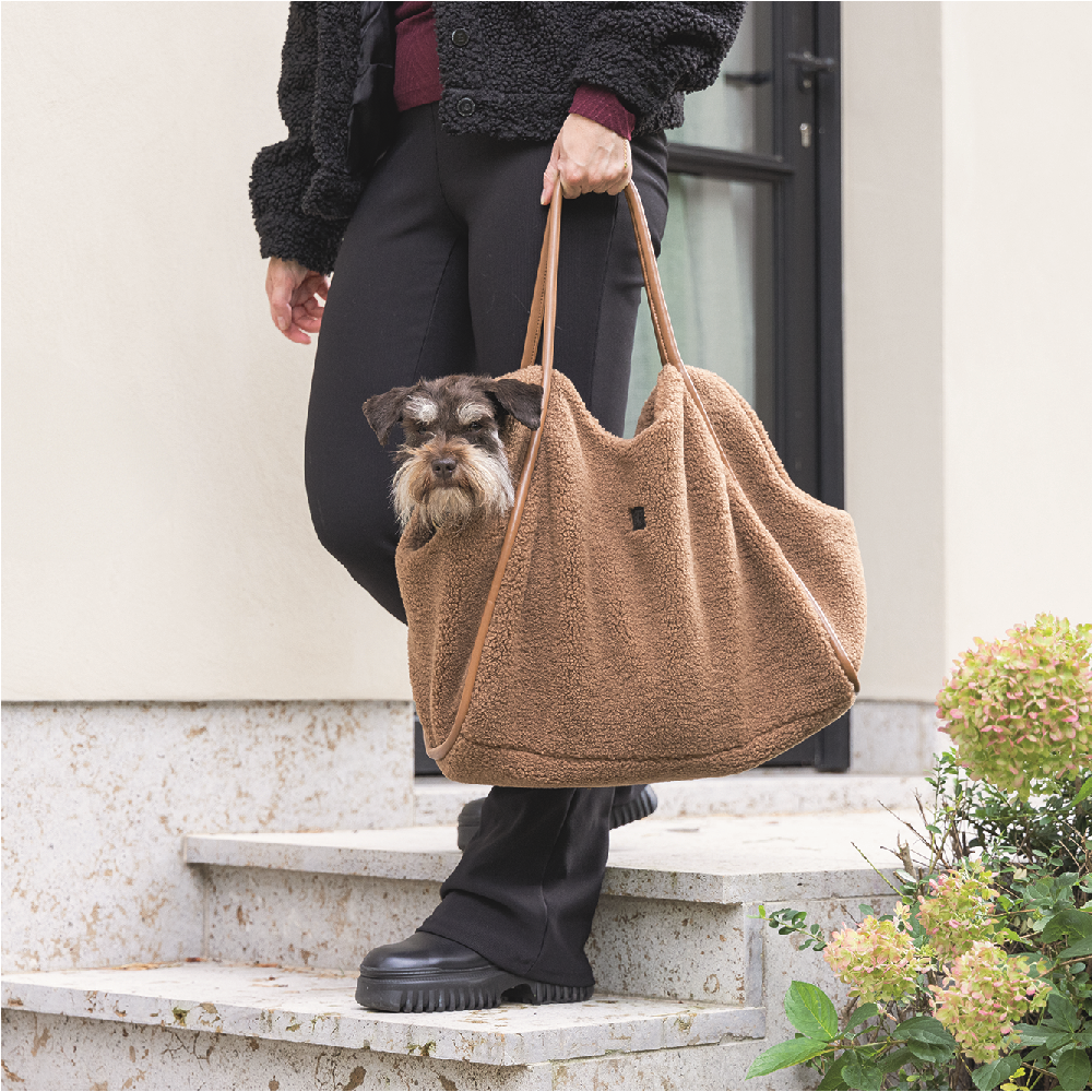 De tas is gemaakt van zachte teddystof, wat zorgt voor een comfortabele en stijlvolle look. De pluche binnenvulling biedt extra comfort voor je hond. Deze binnenvulling is uitneembaar en kan eenvoudig gewassen worden op 30 graden in de wasmachine.