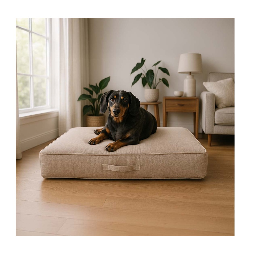 Ook kleine viervoeters verdienen grootse rust. Met het Orthopedisch hondenmatras S beige met springveren krijgt je hondje een heerlijk plekje waar comfort en ondersteuning samenkomen. Perfect voor pups of kleine rassen die net zo graag prins(es)heerlijk willen liggen als de grote honden.