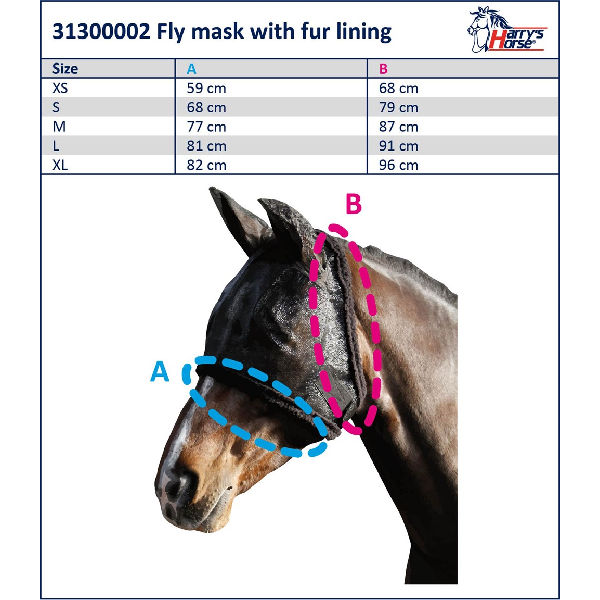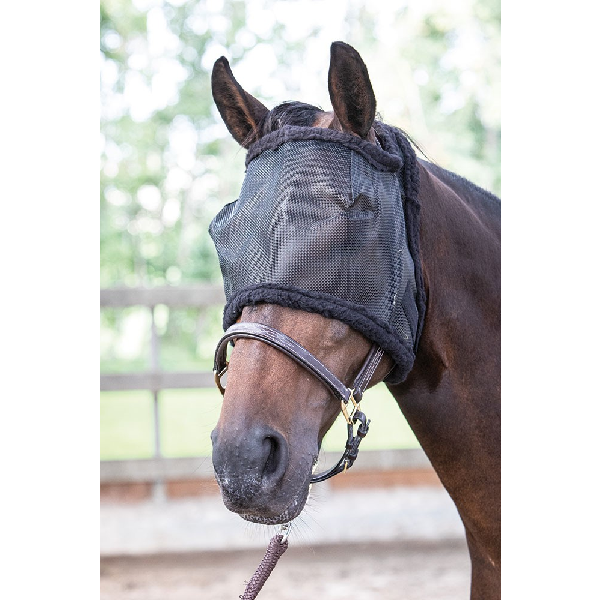 Vliegenmasker met coupenaden bij de ogen. Stevig materiaal, rondom met fleece afgebiesd. zonder oren.