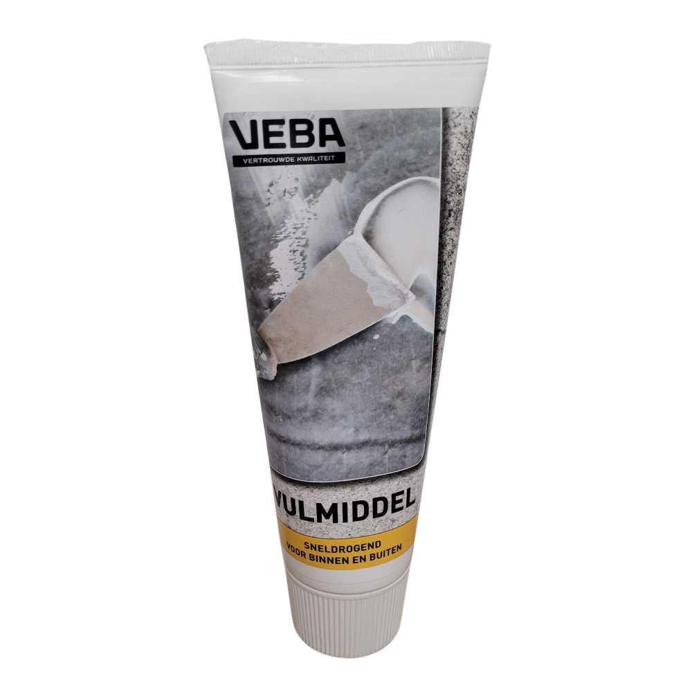 Het VEBA vulmiddel is geschikt voor het vullen van gaten en scheuren in o.a. gips, beton, steen, stucwerk en cement. Het heeft een sterke hechting, en krimpt en barst niet. Het VEBA vulmiddel heeft een sneldrogende eigenschap, en is al na een half uur schuur- en overschilderbaar. Het vulmiddel droogt op met een witte kleur.